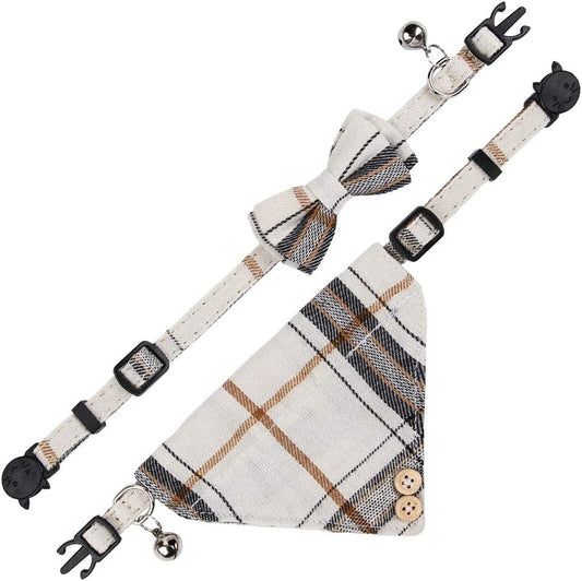 Breakaway Cat Collar with Bells - 2 Pack Cat Collar with Bells, Cat Collars with Bandana, Accessories for Pet Collars, Adjustable for Cats and Small Dogs