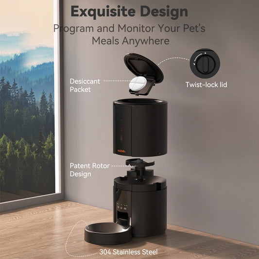 Automatic Dog Food Feeders, FT70P Timed Cat Feeder with Portion Control, Auto Dog Dispenser with 10S Meal Call and Backup Power Supply for Cat & Dog, 5L, Black
